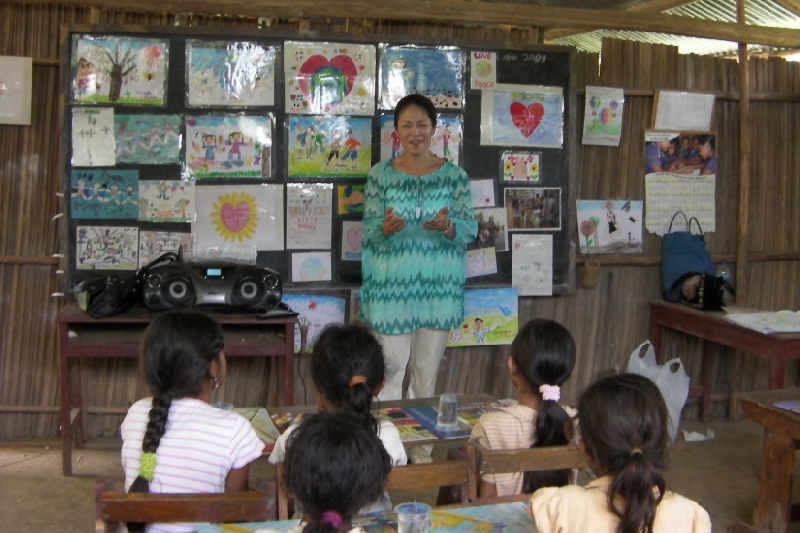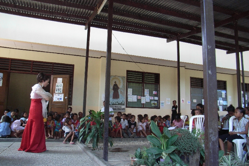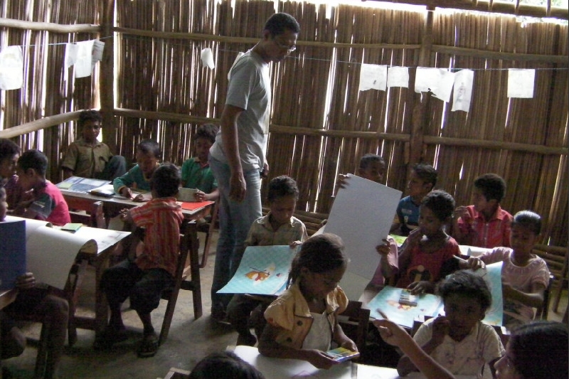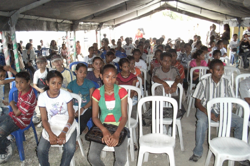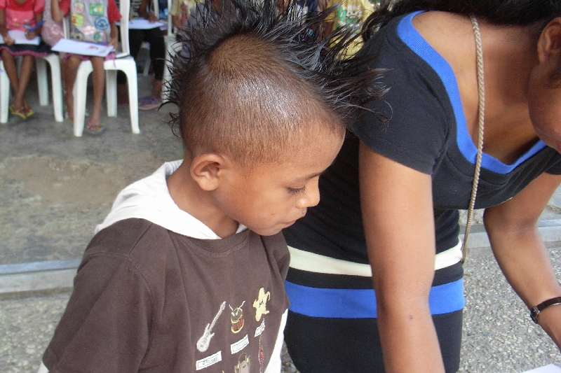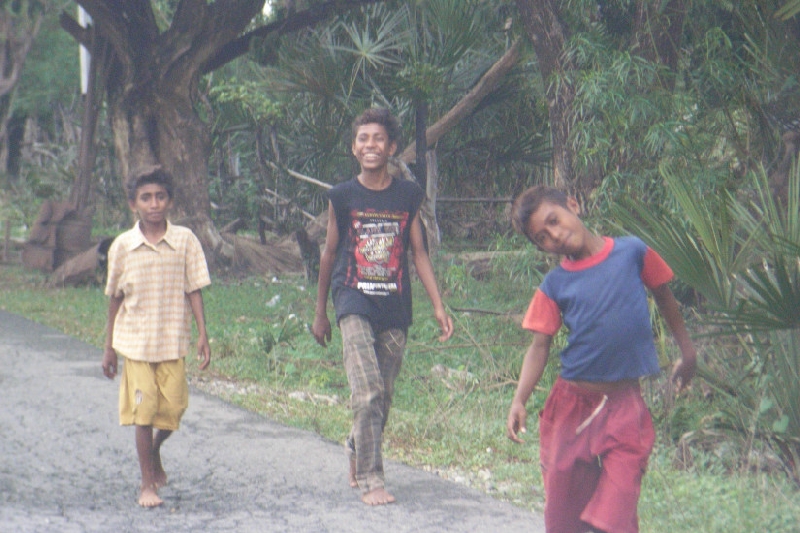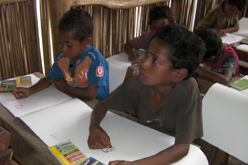 29日、Aileuの学校へ。学校は、椰子の茎の壁にトタン屋根。もちろん、電気はありません。 |