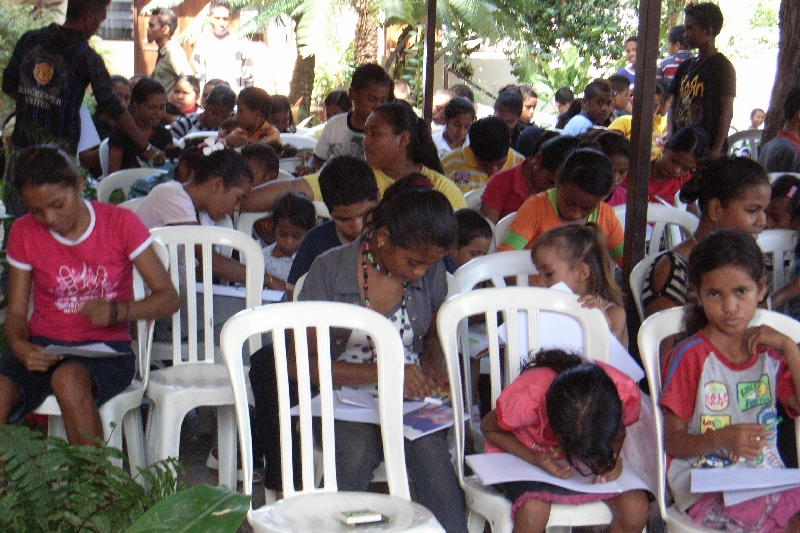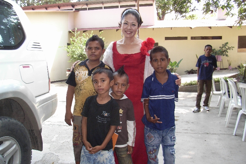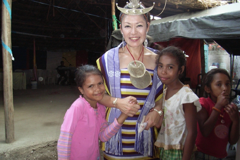 O Rai Timorや沖縄の歌を歌う。 | 農夫の皆さん、とっても喜んでくださいました。「僕たちはお金も無いし、着る服も無い、コンサートなんて聞けるはずもないのに、Tazuは僕たちに歌いにきてくれたんだ」 |