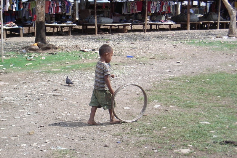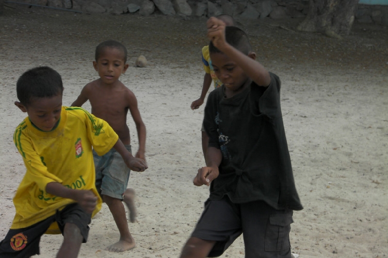 ボロボロの靴、ボロボロのサッカーボールでも、みんな楽しそう。 | 写真撮っていい? いいよ-! 遊ぶのを止めてカメラに向かってくれました。 |