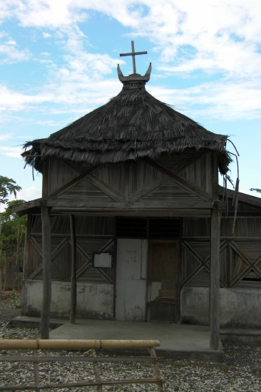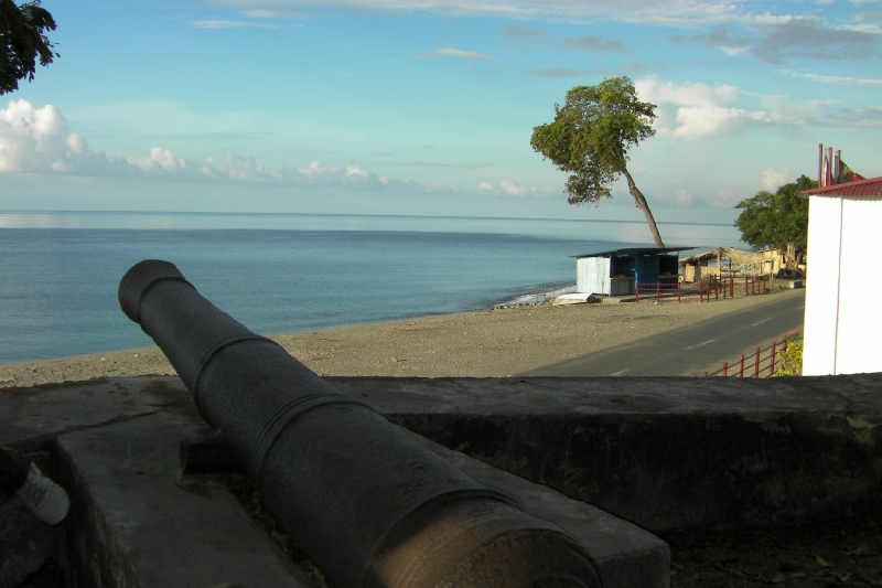 そんな空間には似合わない、ポルトガル支配時代の砲台の跡。 | 伝統の建物、トラディショナルハウスの教会。 |