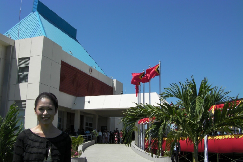 到着して直ぐに、沖縄チームのみんなと打ち合わせ。※沖縄チームとは、JICAの研修で沖縄を訪れた24名の東ティモールの仲間たちのこと | まずは、東ティモール外務省を訪問。中庭がとってもきれいです。 |