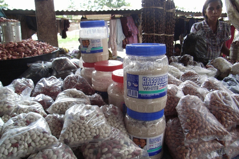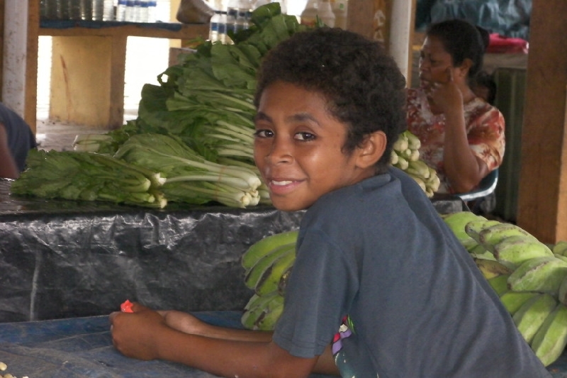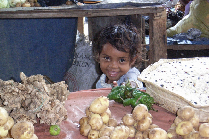 マリアナの市場で店番をする女の子。カメラを向けると恥ずかしそうに笑ってくれました。 |