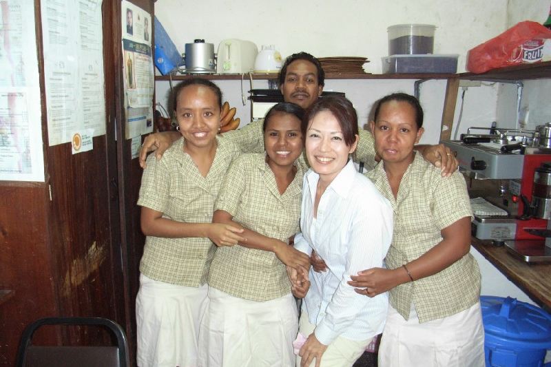 12月1日、今日から泊りがけで、東の地域に。Lagaには、首都Diliから車で4時間。 | Lagaに向かう途中必ず立ち寄る、Pousada Baucauホテルの従業員とは、すっかり仲良しに。Tazu今度はいつ帰って来るの? |
