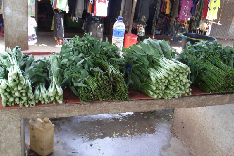 子どもは、遊び道具を見つけ出す天才。どこの国の子も同じですね。 | 空芯菜(ンチェーパー)は、東ティモールの食卓に毎日乗ります。 |