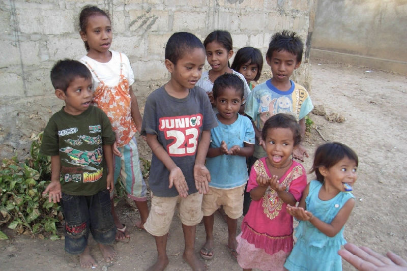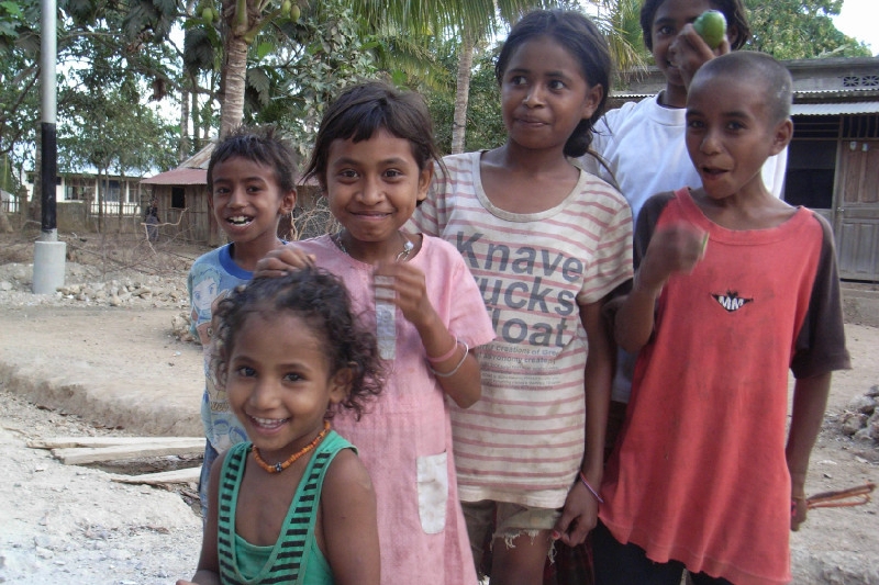 メハラに到着。首都Diliからは6時間。ロスパロスからは、道に迷って3時間でした。水が無い村。安全な水を届けることができれば... | 苦しい環境の中でも、子ども達は必ず笑顔を返してくれる。 |