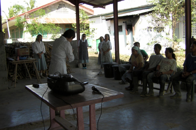 街角コンサート開始。メハラの子ども達へは粉ミルクと缶詰を届けました。沖縄の子ども達の絵は、修道院の掲示板に週変わりで展示してくださることに! | 聖母訪問会のシスター方の深い愛情が、子ども達を元気にさせる。毎日、村人の家を訪ね、病人の身体を拭き、子ども達の様子をご覧になって、栄養失調の子どもは修道院につれて帰り栄養状態を良くしてから家庭に戻す。 |