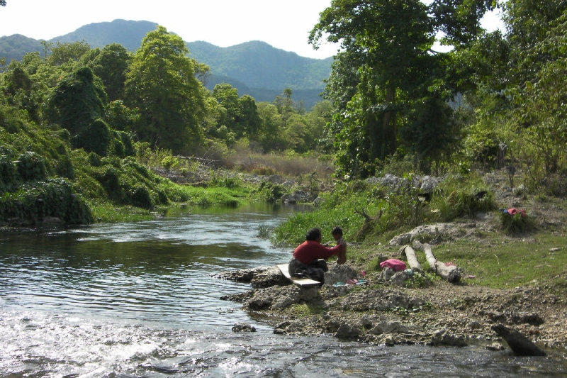 水質は、沖縄の南部の水と同じ、石灰岩を通った水。村人の水浴(ハリス)や洗濯の場になっています。 |