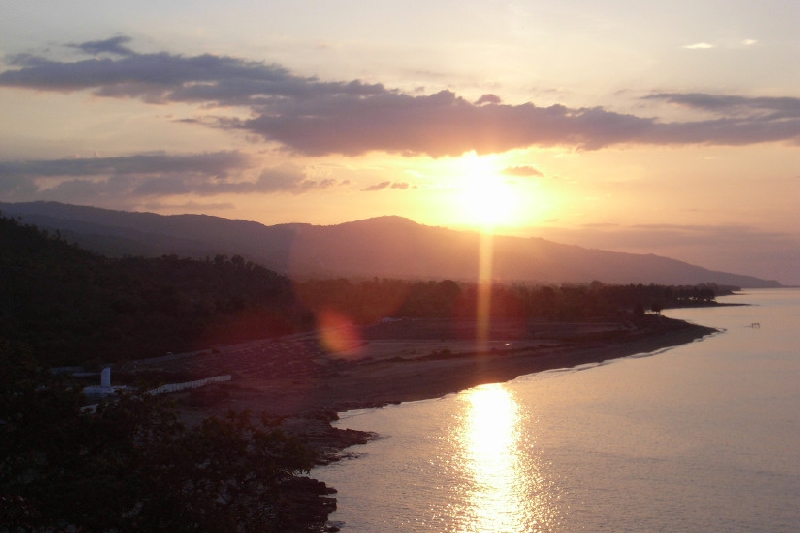 ここでは、椰子の実のワイン、Tua-Mutinを売っている。 | 神様が降り立ったのかと思うほど美しい、Diliの夕刻。 |
